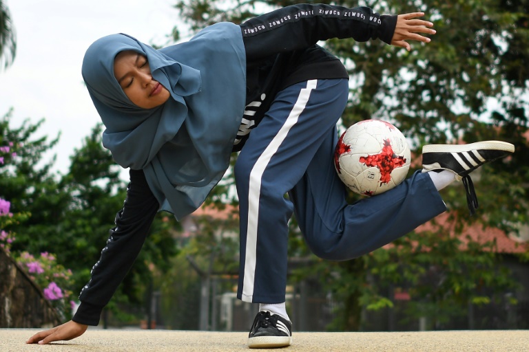Une étudiante de 18 ans fan de football freestyle qu'elle partique avec son voile islamique fait sensation en Malaisie, pays d'Asie du Sud-Est à majorité musulmane, où le sport est largement dominé par la gent masculine.