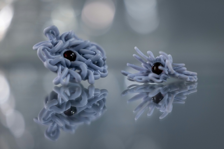 "Cette gamme chromatique permet d'en faire des formes similaires mais qui donnent chacune des effets complètement différents, spécifiques, tout à fait uniques", même fabriquées en série, souligne Paulina Smigiel, membre de l'atelier animé par le professeur Slawomir Fijalkowski, designer et artiste bijoutier.