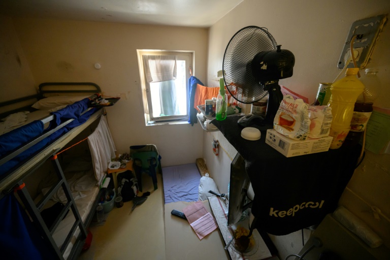 "Les 38 degrés, on les ressent bien. Les murs absorbent bien la chaleur. Il y a la condensation, l'humidité...", confie un détenu aux noirs cheveux bouclés dans la cellule de 9 m2 qu'il partage avec deux autres personnes.