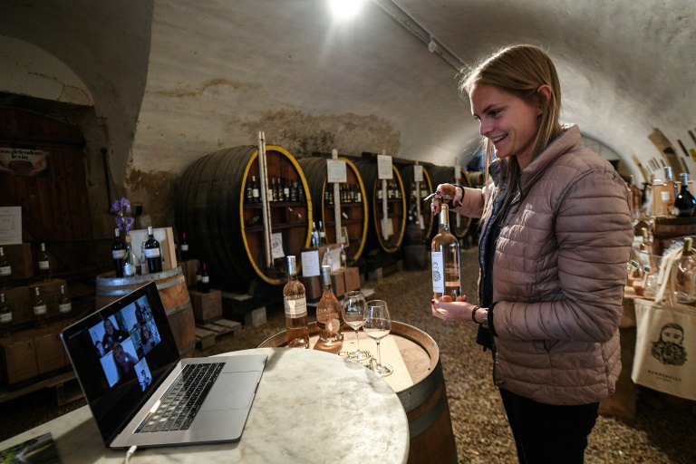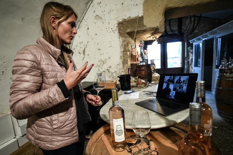A 18H30, les cinq amies sont au rendez-vous, chacune un verre à la main devant son ordinateur, pour partager un apéro et un cours d'oenologie virtuel: à l'origine de cette "visio-dégustation", une viticultrice des Bouches-du-Rhône, qui veut contrer la chute des ventes due au confinement.