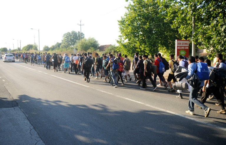 Allongés à l'ombre, s'abritant du soleil de plomb qui pèse sur la plaine de Vojvodine (nord de la Serbie), les migrants qui ont entamé une marche vers la Hongrie dans l'espoir de rejoindre l'UE reprennent des forces avant de poursuivre leur périple.
