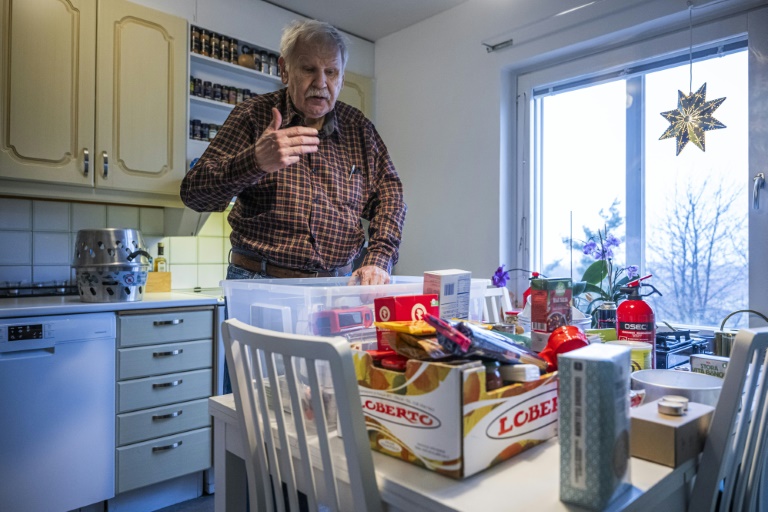 "Voilà ce que l'Etat recommande de stocker" pour tenir les premiers jours d'une guerre, dit, chez sa voisine à Stockholm, l'expert en survie Harry Sepp.