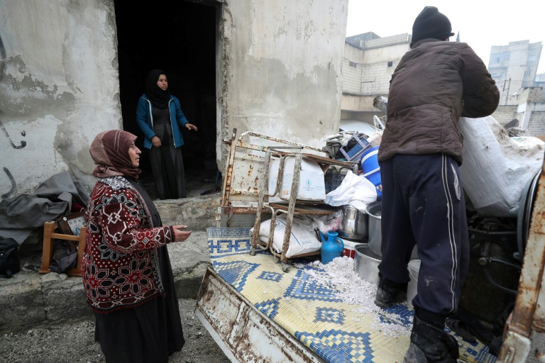 Emmitouflée dans une veste en laine, Oum Hatem aide à vider une camionnette partie récupérer quelques affaires chez elle: des provisions dans des bocaux, des seaux en plastique, un tapis de jute. "Si nous en avions les moyens, nous aurions loué une maison", se désole-t-elle. "Mais nous n'avons même pas de quoi manger."