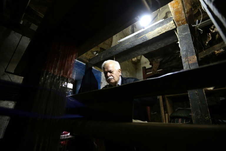 Dans un coin de l'atelier, traîne un métier à tisser en bois à la taille imposante. "Avec la guerre, la nouvelle génération n'apprend plus le métier et j'ai peur que ce métier à tisser ne soit plus utilisé", se désole le propriétaire Ahmad Chakaki.