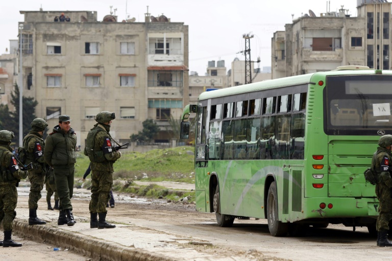 Ce sont d'ailleurs des policiers militaires russes qui supervisaient le matin la sortie de rebelles et de civils Ă bord de bus verts de Waer, selon un correspondant de l'AFP sur place.