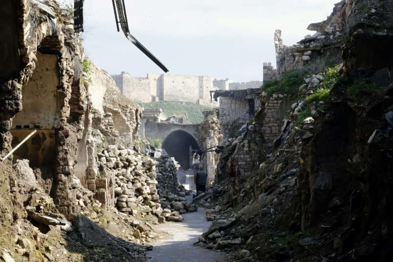 Dans cette ancienne place forte des rebelles, reprise par le régime de Bachar al-Assad fin 2016 au terme de quatre ans de combats dévastateurs, les ouvriers vêtus de gilets et de casques déblaient les gravats et bouchent les trous béants avec des petites briques de grès rouge. Ces travaux s'inscrivent dans le cadre d'un vaste plan de rénovation financé par la Fondation Aga Khan pour la Culture en vertu d'un accord avec les autorités syriennes.