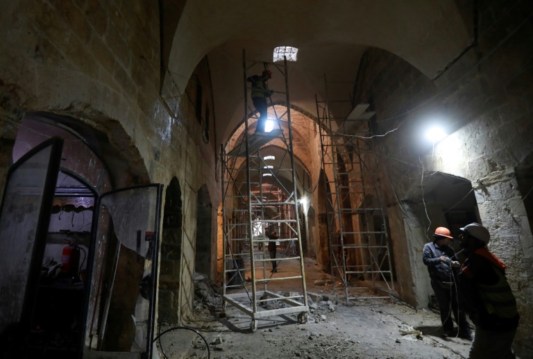 La guerre a dévasté la Syrie, détruisant des infrastructures, des villes et des sites historiques. Le régime a lancé des travaux de restauration de sites historiques classés comme la forteresse du Crac des Chevaliers (ouest) et la cité antique de Palmyre (est), détruite en partie par les jihadistes. A Alep, Mohammed Baqiya, explique que la restauration ne vise pas seulement l'aspect physique du vieux marché. "La pierre sera certes restaurée" mais "encore plus important est le retour des commerçants et des gens qui donnaient vie" à ce lieu, affirme ce Syrien de 47 ans. "La beauté du souk importe peu s'il reste vide".