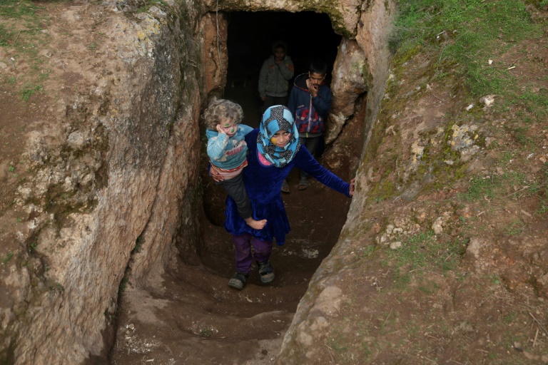 Dans une oliveraie ensoleillée du nord-ouest syrien, Chamseddine Darra descend une volée de marches qui s'enfoncent sous terre. Fuyant l'offensive du régime, lui et sa famille n'ont eu d'autre choix que de s'installer dans une caverne. Le trentenaire partage avec ses trois frères et leur famille cette "grotte" exiguë, creusée au milieu des champs vallonnés de la région d'Idleb, près du village de Taltouna.