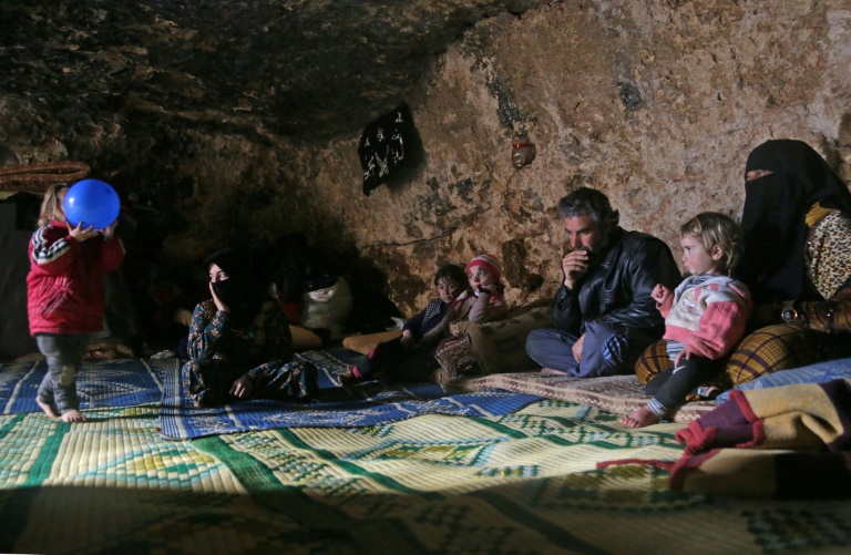 En raison des violences, quelque 900.000 personnes ont été déplacées depuis début décembre dans le nord-ouest syrien, selon l'ONU. Parmi elles, 170.000 civils vivent en plein air ou dans des bâtiments inachevés, faute d'avoir pu trouver un logement ou une tente dans les camps de déplacés bondés. Abou Mohamed partage avec ses proches une grotte souterraine près de Taltouna, après avoir fui son village dans l'ouest de la province voisine d'Alep.