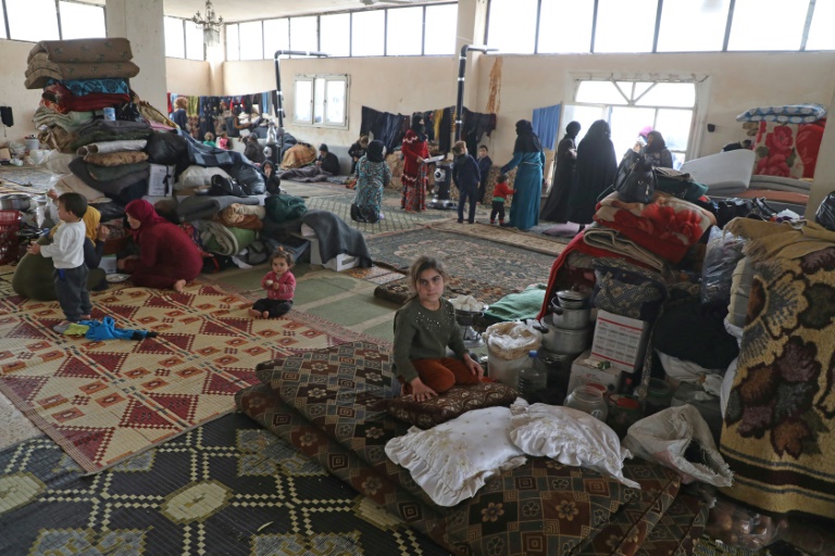 Régulièrement, des correspondants de l'AFP rencontrent des civils contraints de passer la nuit dans leur voiture malgré les températures hivernales, ou installés dans des écoles, des mosquées, voire des prisons désaffectées, transformées en abri temporaire.
