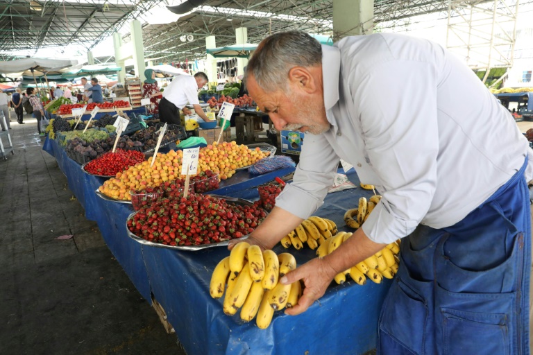 Assise sur une caisse devant son petit étal de légumes, Cemile Baykal se lamente: "Regardez-moi ça, je n'ai rien vendu!" Dans ce marché couvert d'Ankara, la crise de la livre turque fait déjà des victimes parmi les commerçants.