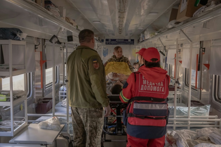 Le train "permet de transporter beaucoup de personnes d'un coup", explique Oleksandre, un médecin militaire de 46 ans chargé de l'évacuation de ces soldats. C'est aussi moins dangereux qu'un hélicoptère compte tenu de la "menace" aérienne russe, relève-t-il.