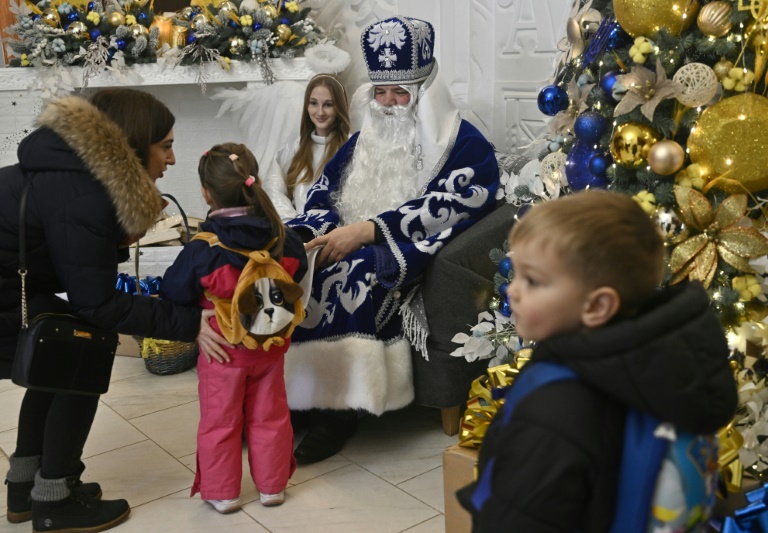 Victoria Voskressova a vécu l'occupation et vu les maisons de ses voisins en feu. Si elle est venue à la bibliothèque en ce jour de décembre, c'est pour que sa fille Maria, sept ans, puisse rendre visite à Saint Nicolas.
