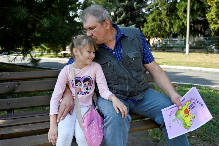 Mais en entendant son grand-père Serguiï Vida parler de l'invasion, Milana, 8 ans, blottit sa tête contre son torse. "La guerre, c'est la mort, la mutilation, la destruction", déclare sans ambages celui qui s'est battu durant la première année du conflit avant d'être démobilisé.