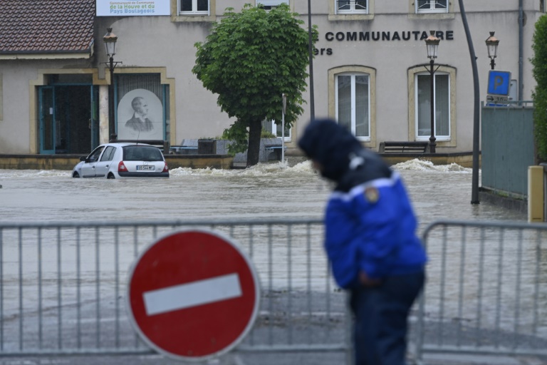 Plusieurs rues sont bloquées dans cette commune de 5.000 habitants à l'est de Metz, où les pompiers sont déployés en nombre pour des opérations de pompage : l'eau atteint déjà le haut des roues des voitures, et les pluies se poursuivent.