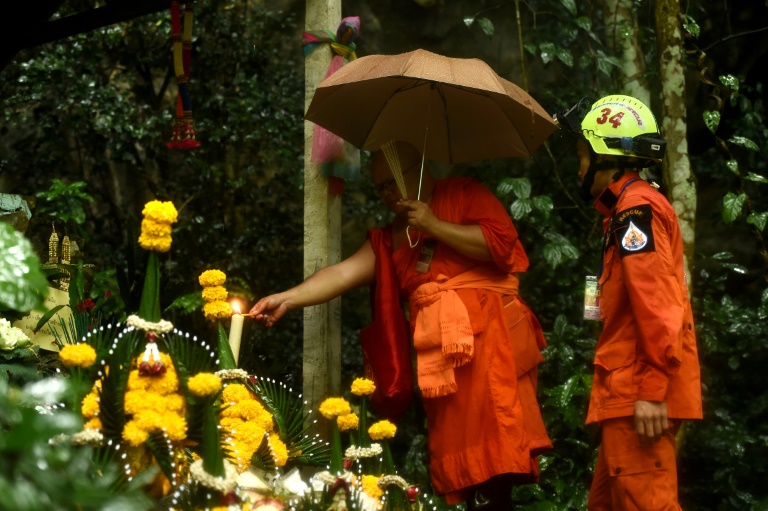 Dans le même temps, des moines bouddhistes, en robe orange traditionnelle, sont arrivés sur les lieux pour chanter des prières devant la grotte, avec les familles des jeunes footballeurs, qui campent pour certaines depuis plusieurs jours sur place. "J'espère qu'aujourd'hui, avec l'aide de toutes les équipes, il sera sauvé", confie Pean Kamlue, mère d'un adolescent de 16 ans coincé. "J'en suis certaine au fond de mon coeur."