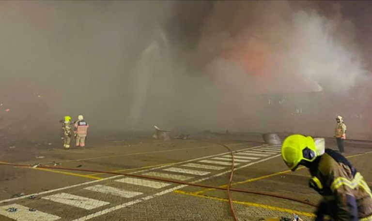 Jeudi, des voitures de police et des camions de pompiers étaient garés aux abords du bateau très endommagé, battant pavillon des Comores et appelé Ocean Trader. Des conteneurs incendiés étaient visibles depuis le quai.