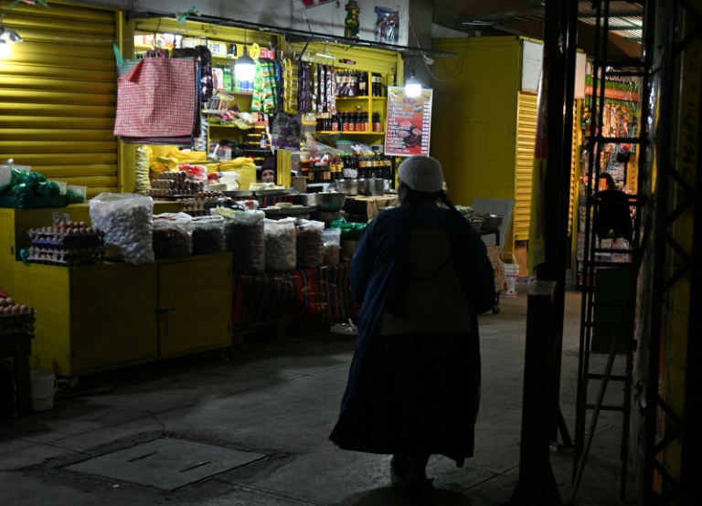 Margarita Avila, une épicière de 66 ans, contemple stoïquement les étals fermés qui l'entourent sur un marché de La Paz, capitale d'un pays en crise.