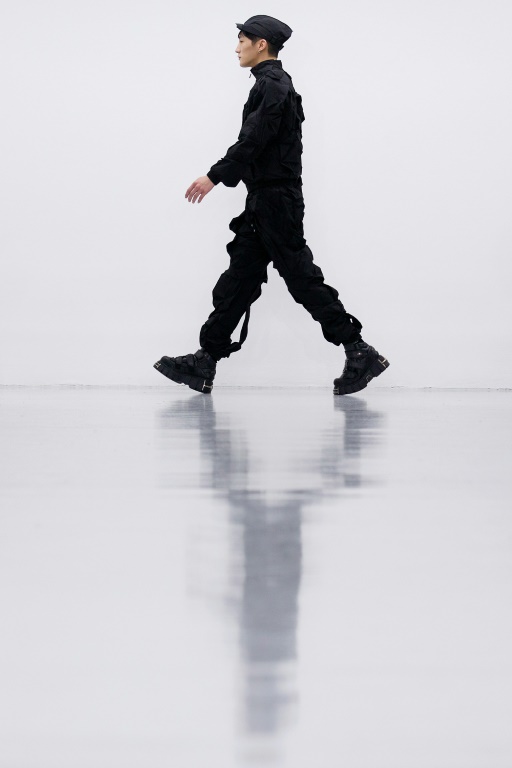 Sur fond de musique électro, Mazhar imagine un peuple "d'individus unis par les ténèbres" et fait du noir sa couleur dominante, qu'il décline à travers un vestiaire avant-gardiste, déroutant et provocateur.