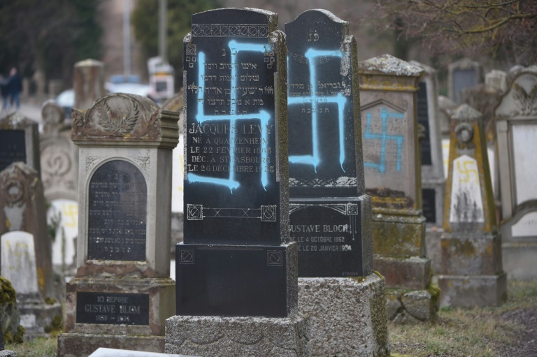 "Ce mardi 19 février, environ 80 sépultures du cimetière israélite de Quatzenheim ont été découvertes profanées", marquées à la bombe de croix gammées, a annoncé la préfecture du Bas-Rhin.