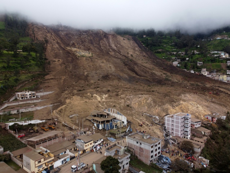 Plusieurs dizaines de maisons ont été ensevelies dans cette localité de la province de Chimborazo, à environ 300 km au sud de Quito, dans une zone andine frappée la semaine dernière par un tremblement de terre qui a fait 15 morts, dont un au Pérou voisin.