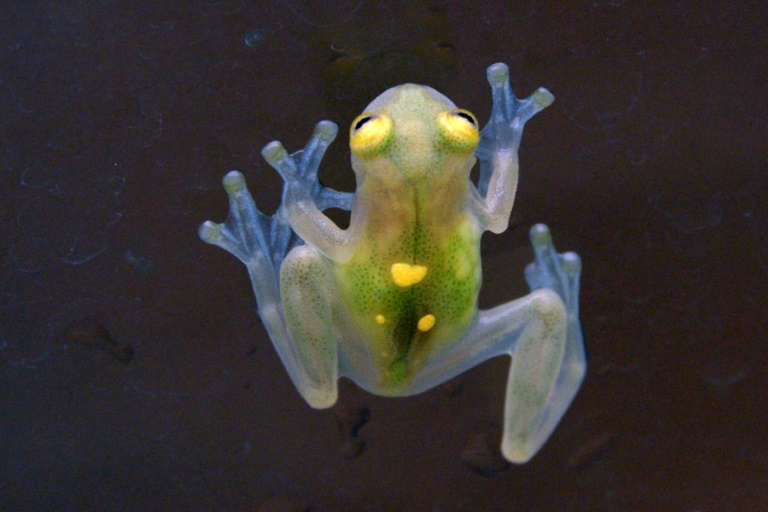 Ce tarif exorbitant "vous donne une idée de ce que peut rapporter le trafic", explique à l'AFP Lola Guarderas, la gérante, tout en montrant une grenouille de verre - dont la peau translucide laisse entrevoir les organes et le coeur rouge battant - qui grimpe le long de la paroi transparente de son enclos.