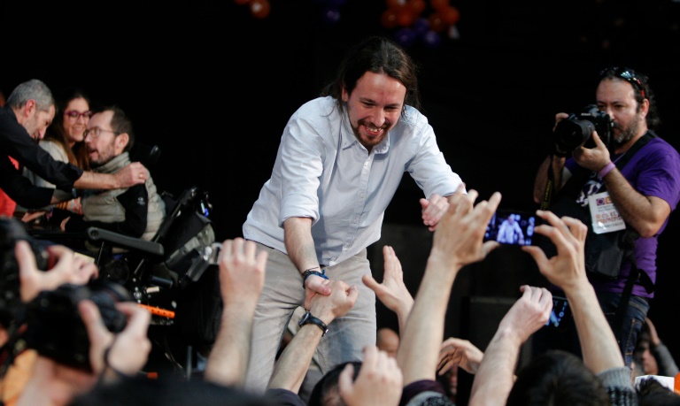 Le même soir, à Valence, des dizaines de milliers de personnes en liesse acclamaient Pablo Iglesias, professeur de Sciences politiques de 37 ans qui porte les cheveux longs en queue de cheval, allié du Premier ministre grec Alexis Tsipras.