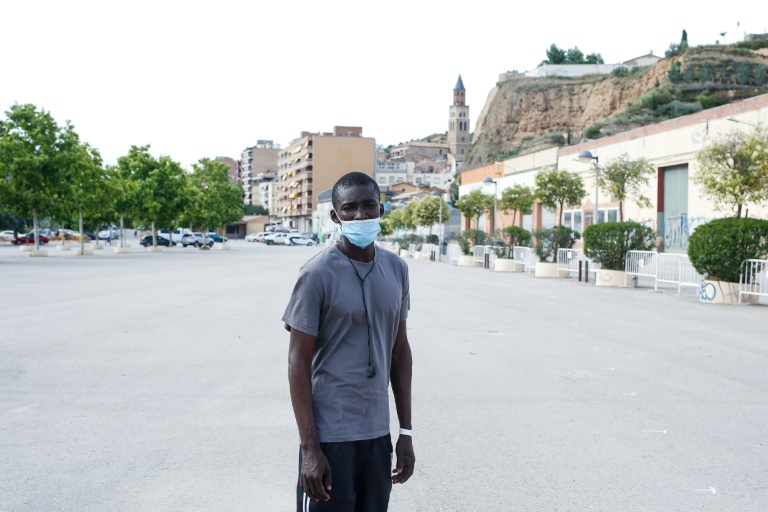 Pour la toute première fois, la petite ville de Fraga (15.000 habitants) a ouvert jeudi ce gymnase pour abriter jusqu'à 50 saisonniers qui dormaient jusqu'alors dehors et détecter ainsi les éventuels cas de Covid-19.