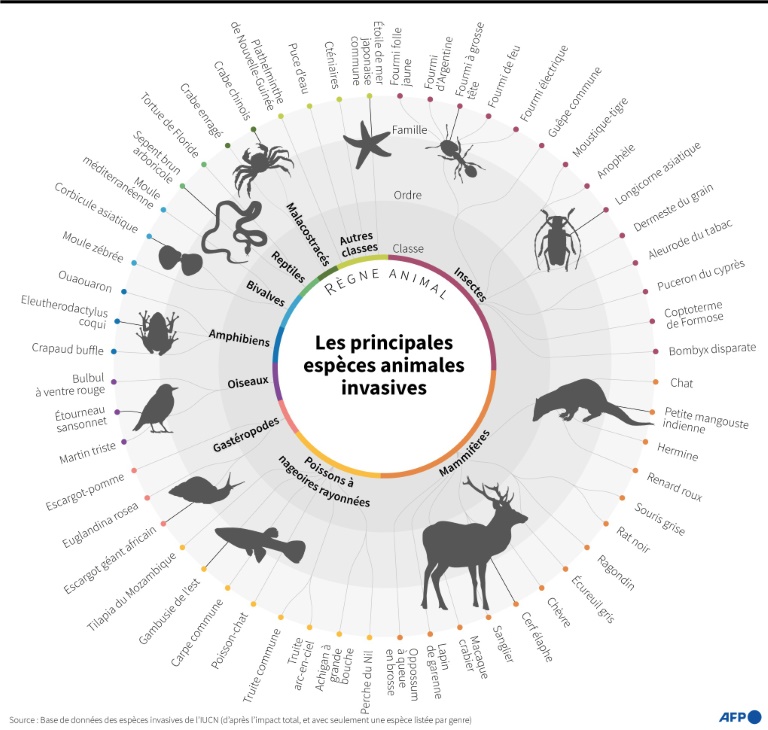 Peu de recensements officiels existent: la base de données mondiales des espèces invasives (GISD), coordonnée par l'Union internationale pour la conservation de la nature, estime leur nombre à 1.071, rappelle M. Diagne. Mais le changement climatique accélère le déplacement d'espèces.