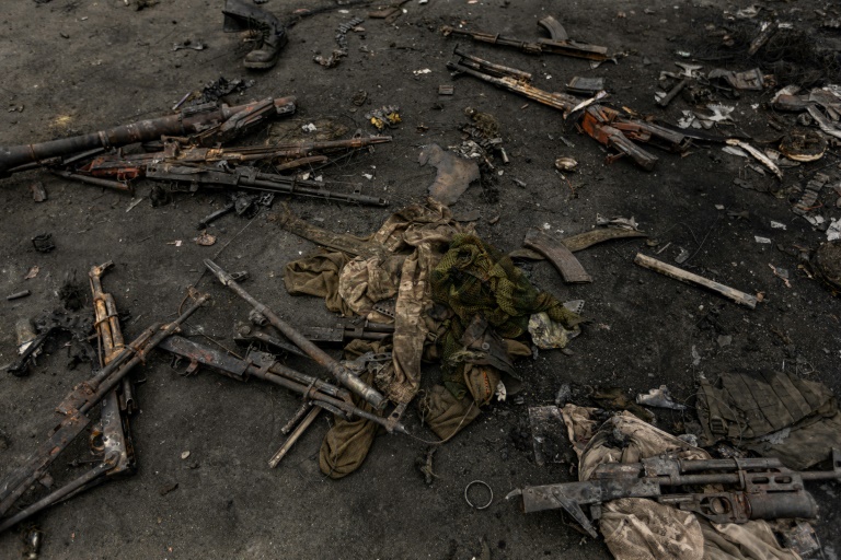 Les rues de la ville sont couvertes des débris laissés par la débandade. Pickups criblés de balles, casques, uniformes, chargeurs de fusils automatiques...