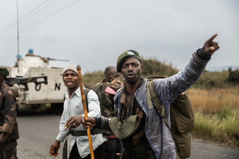 Des colonnes de renforts font route depuis Goma sous les acclamations de civils déplacés venus des camps voisins pour assister à la scène, tandis que les détonations résonnent.