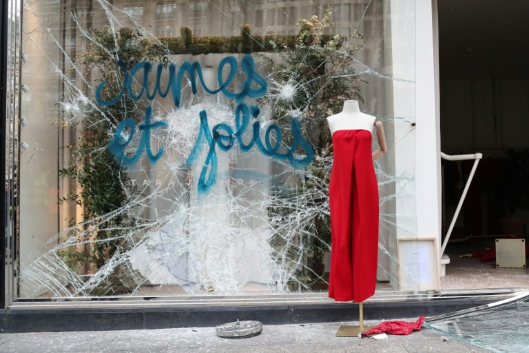 Nespresso, Hugo Boss, Lacoste, le Fouquet's... Les palissades de protection en bois sont arrachées les unes après les autres, les vitrines cassées, les magasins pillés.