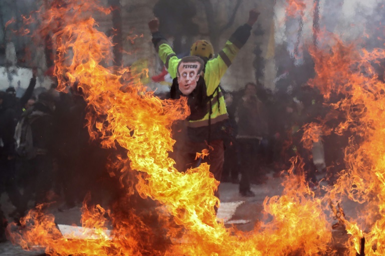 Certains, dont les éléments les plus violents, ont quitté les Champs-Elysées pour échapper à la "nasse" policière et semer le trouble ailleurs dans la capitale. "C'est que le début!", crie un manifestant masqué, lançant à l'adresse d'Emmanuel Macron : "L'ultimatum ne fait que commencer ! On vient te chercher chez toi !".