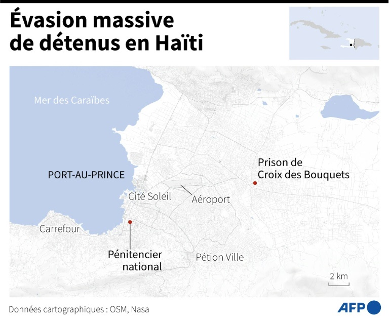 Depuis jeudi, des gangs armés, qui ont pris le contrôle de pans entiers du pays, y compris de la capitale, s'en prennent à des sites stratégiques, disant vouloir renverser le Premier ministre contesté Ariel Henry. Au pouvoir depuis 2021, ce dernier aurait dû quitter ses fonctions début février.