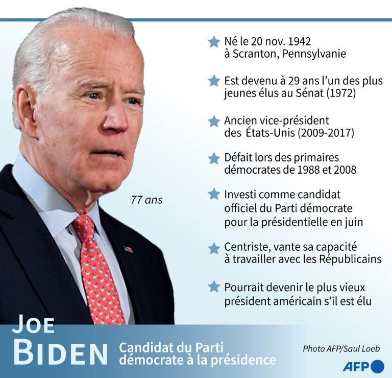Joe Biden a été officiellement investi mardi par les démocrates pour la présidentielle américaine le 3 novembre où il affrontera Donald Trump qui l'a accusé d'être la "marionnette" de l'aile gauche du parti.