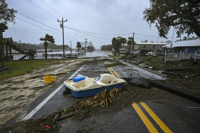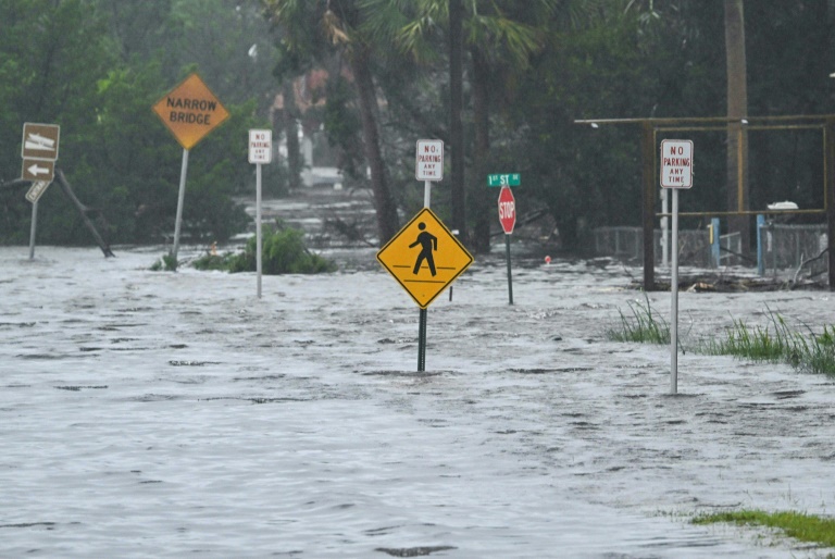 Un peu plus loin, à Steinhatchee, petite localité côtière d'un millier d'habitants, la rue principale, quasi déserte, a été complètement inondée et semble être un prolongement de la rivière avoisinante.