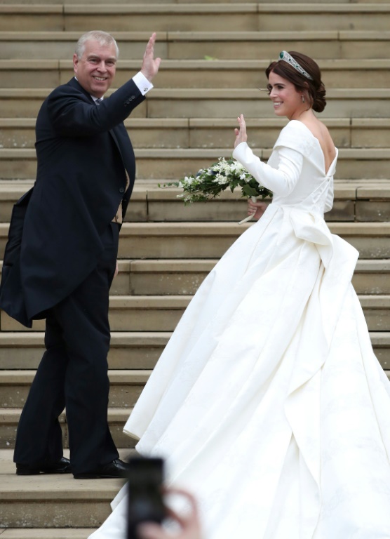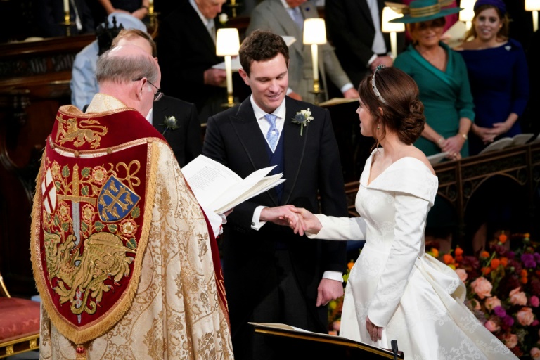 La princesse Eugenie, petite-fille de la reine Elizabeth II, a épousé vendredi son compagnon de longue date Jack Brooksbank, à Windsor, un mariage en grande pompe décrié pour son coût quelques mois après celui du prince Harry et Meghan Markle.
