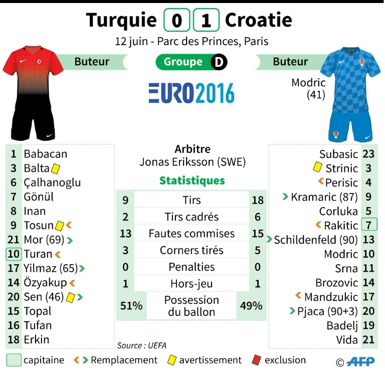 Omniprésent au milieu de terrain, Modric a été le principal artisan de la mainmise croate sur la rencontre, face à une équipe de Turquie incapable de porter le danger dans le camp adverse. La timide prestation d'Arda Turan, l'autre N.10 du match qui a été remplacé peu aprÚs l'heure de jeu, en est le symbole.
