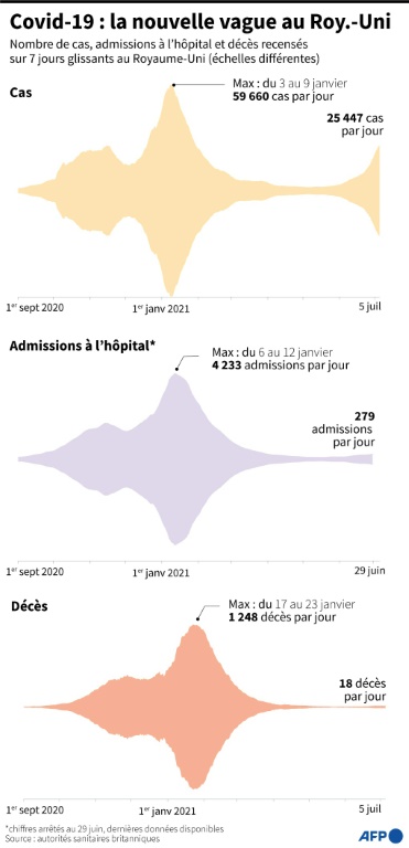 Et si les effusions de joie ont souvent rappelé le "football d'avant" la pandémie, un tel regroupement reste un motif d'inquiétude pour nombre de responsables européens, par rapport à la flambée des cas de Covid-19 dus au virulent variant Delta (près de 30.000 par jour sur la semaine écoulée au Royaume-Uni).
