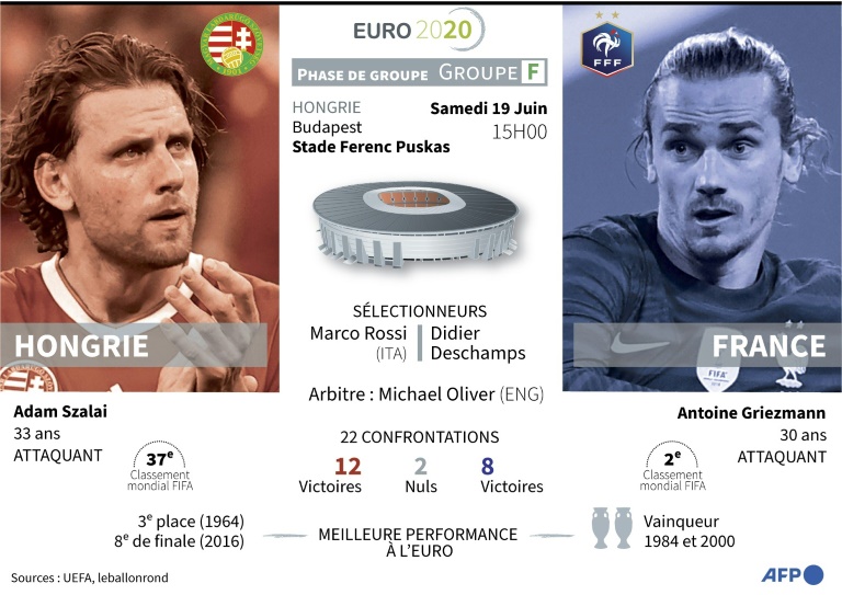 Chaud devant pour les Bleus! Dans un stade comble et largement hostile, la France vise contre la Hongrie une qualification anticipée pour les huitièmes de finale de l'Euro, samedi (15h00) sous l'écrasante chaleur de Budapest, avant même d'y défier le Portugal mercredi.