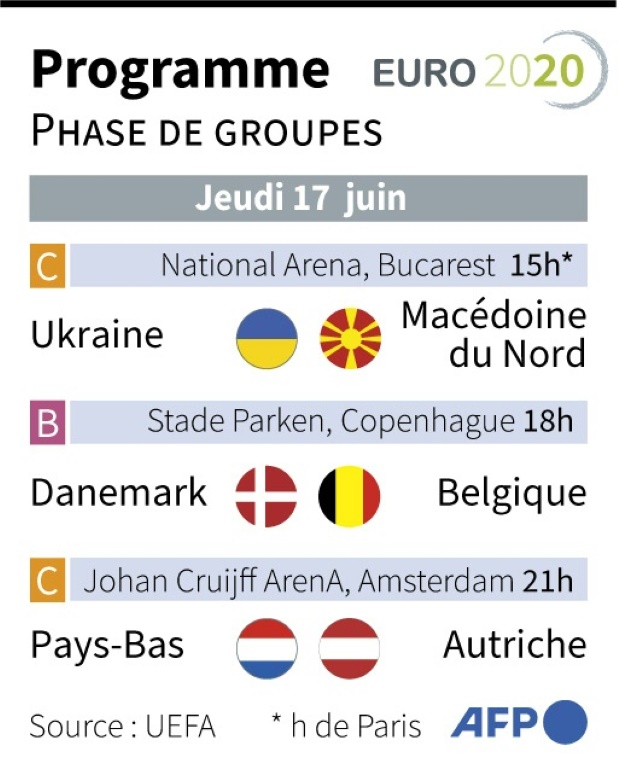 Après l'effroi du drame frôlé par Christian Eriksen, le Danemark retrouve la pelouse de Copenhague contre la Belgique (18h00) jeudi, qui peut déjà assurer sa qualification pour les huitièmes de finale de l'Euro, comme les Pays-Bas ou l'Autriche, opposés à Amsterdam (21h00).