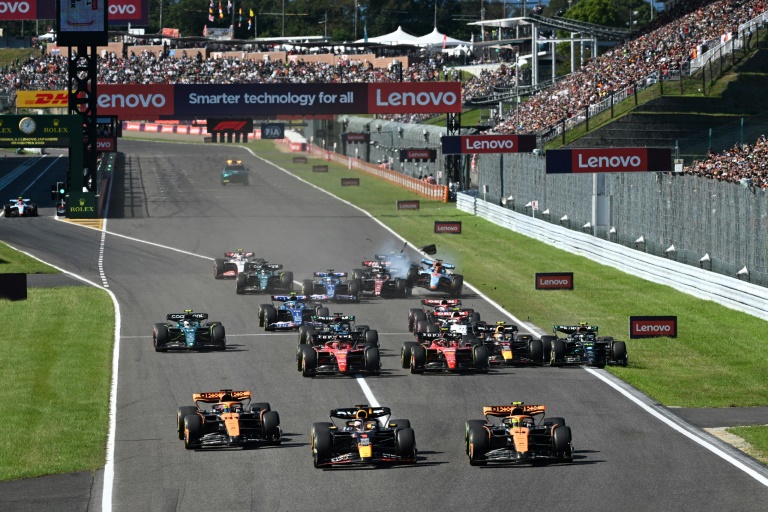 Alors que le Néerlandais a failli se faire surprendre dès l'extinction des feux par Piastri, 2e sur la grille, et Norris, 3e, à l'arrière plusieurs pilotes se sont accrochés, parmi lesquels Pérez, contraint de repasser par les stands pour réparer sa monoplace après un contact avec la Mercedes de Lewis Hamilton.