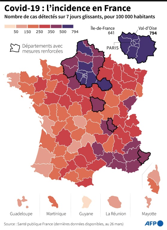 Pour se décider, Emmanuel Macron tiendra compte des dernières données épidémiques, qu'il a examinées mardi soir, notamment avec le Premier ministre Jean Castex. La tendance reste inquiétante avec une hausse des chiffres mettant l'hôpital sous une très forte tension. Le nombre de malades en réanimation a grimpé, à 5.072, au-delà des capacités hospitalières normales et du pic de la deuxième vague de novembre. Le taux d'incidence a également augmenté.