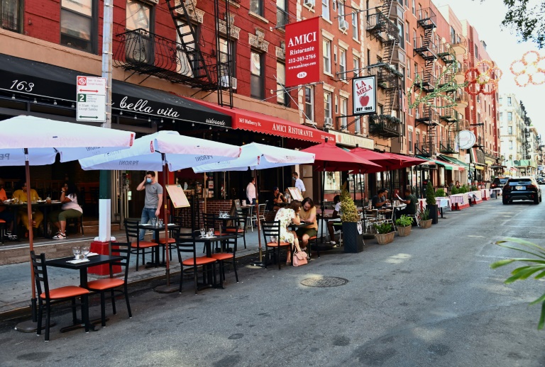 Andrew, cadre commercial quadragénaire, voit dans la multiplication des terrasses de restaurants "une image d'optimisme": près de 9.000 terrasses ont ouvert en quelques semaines, depuis que la mairie a simplifié les formalités pour compenser la fermeture des salles.
