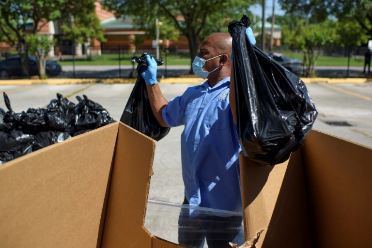 De longues heures d'attente dans un véhicule: à cause du coronavirus, des millions d'Américains, exsangues, se tournent vers les banques alimentaires, qui multiplient les distributions avec la crainte de ne bientôt plus pouvoir faire face.