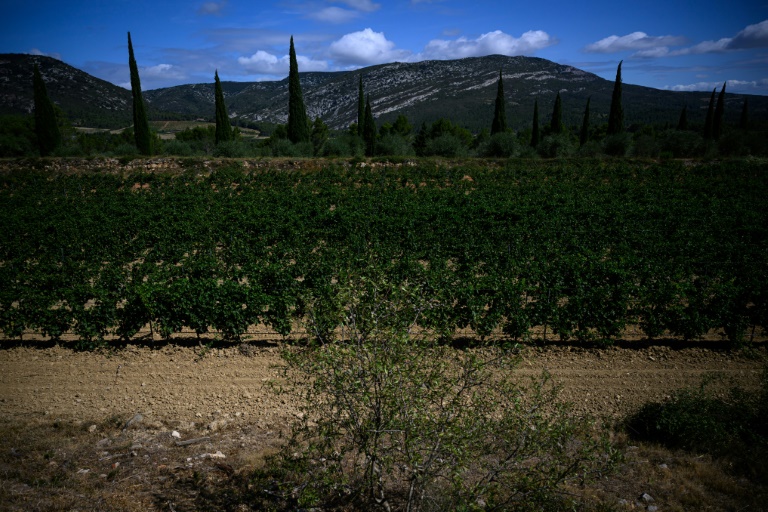 Sous un soleil écrasant, les raisins des Corbières, dans l'Aude, commencent à mûrir... trop vite: avec le réchauffement climatique, ils se chargent en sucre et font des vins plus alcoolisés, poussant certains vignerons à changer de cépages pour des variétés plus tardives.