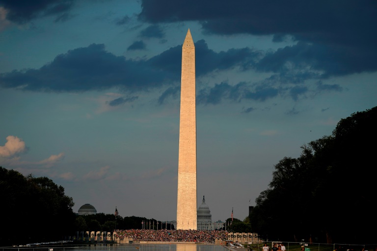 Pendant que le président parlait, de nombreuses personnes se pressaient déjà tout au long du "Mall", la célèbre esplanade du centre de Washington, pour être aux premières loges des feux d'artifice.