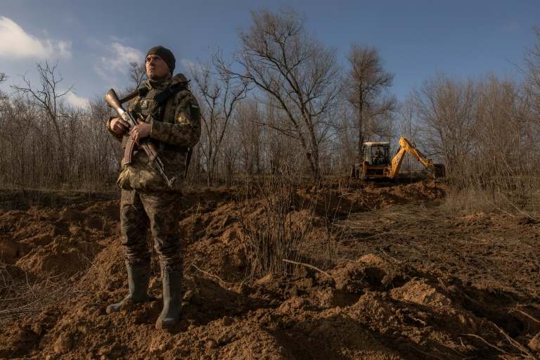 L'engin de chantier est civil mais il est manĆuvrĂ© par un soldat de la 26e brigade ukrainienne, qui construit "des fortifications afin que des unitĂ©s (...) puissent venir ici en position de dĂ©fense", explique Iouri, 42 ans, un responsable de l'Ă©quipe de militaires excavateurs.