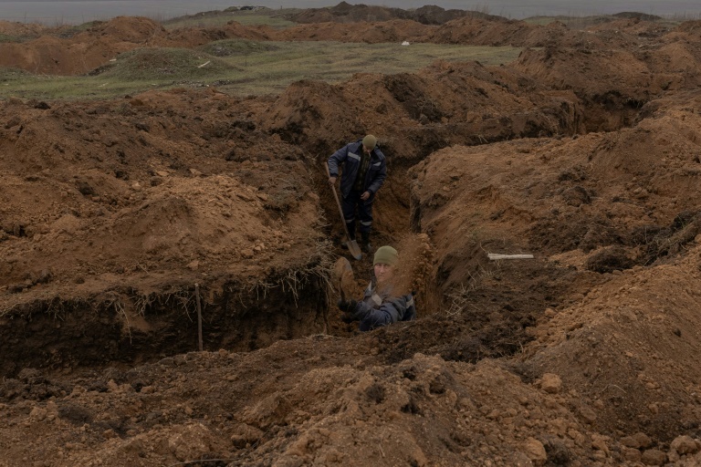 Ces lignes sont constituées de tranchées, de bunkers, de piÚges antichars - notamment des blocs de béton pyramidaux communément appelés "dents de dragon". Les militaires ukrainiens interrogés par l'AFP n'ont pas précisé s'ils posaient également des mines.
