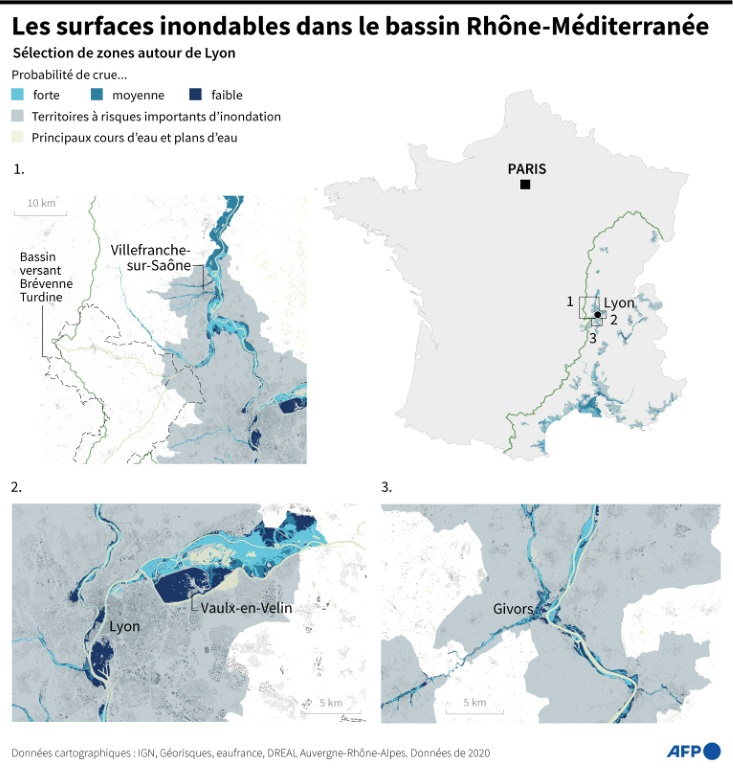 Sur les 16,8 millions de Français qui vivent en zone inondable dans un scénario de crues extrêmes en métropole, 2,5 millions habitent en Auvergne-Rhône-Alpes, selon des estimations de la Direction régionale de l'environnement, de l'aménagement et du logement (Dreal).